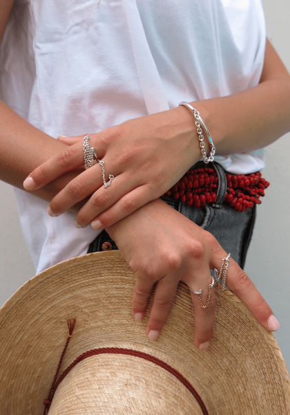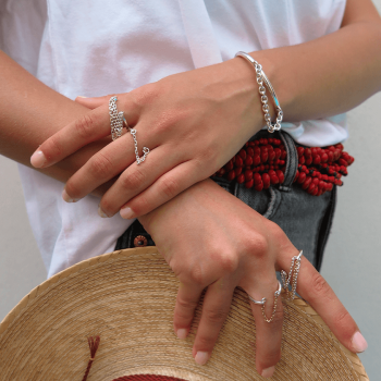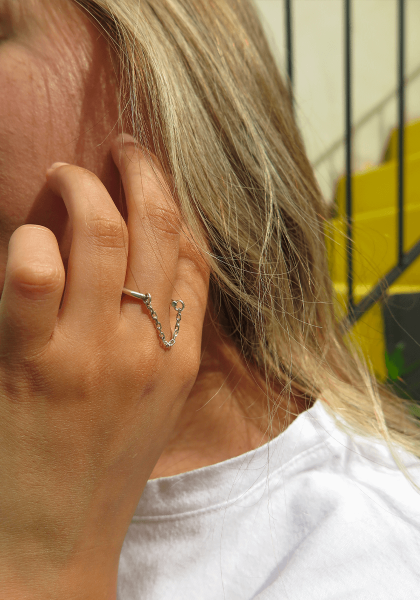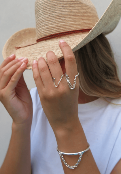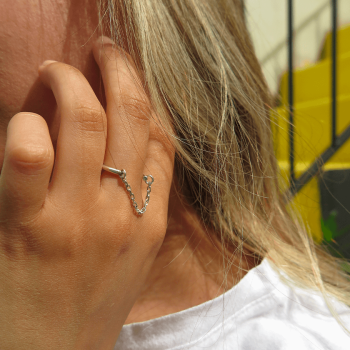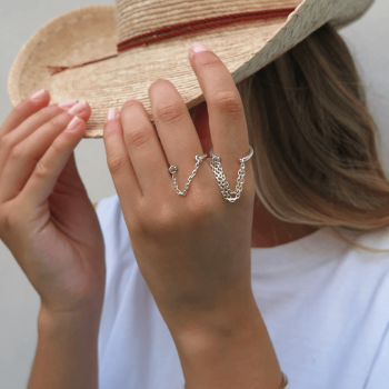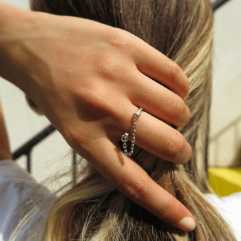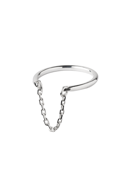 Notre Bague Cascade Simple est composée d'un demi fil rond, agrémenté d'une chaine maille forçat. Ce modèle est également disponible en or et argent.