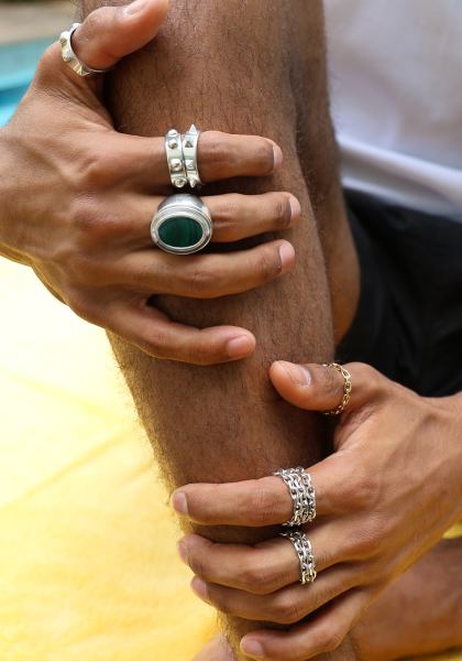 Notre Bague Clou Pyramides allie sophistication et modernité, avec des pyramides finement ciselées qui apportent une touche géométrique audacieuse. Sa silhouette épurée et son design distinctif en font un accessoire incontournable pour ceux qui apprécient un style unique et affirmé.
