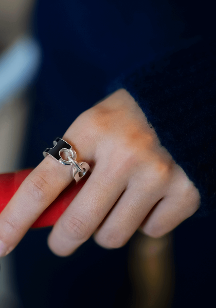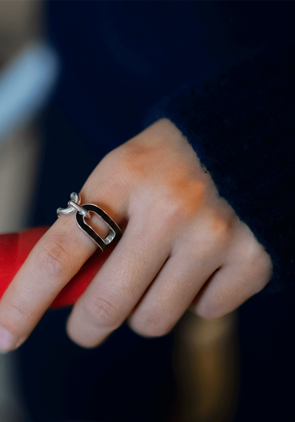 Sublimez vos mains avec la Bague Circé Hélios Color, une pièce audacieuse avec une touche de couleur de la Collection Circé. Elle se distingue par ses anneaux asymétriques entrelacés élégants dont un laqué de la couleur de votre choix. Cette bague, à la fois moderne et pleine de caractère, incarne à merveille l’esprit artisanal et la créativité de Marc Deloche.