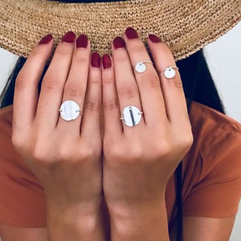 Notre Bague Bubbies Ronde BB incarne une élégance discrète et contemporaine. Son anneau fin en argent massif supporte une médaille ronde, légèrement bombée, qui attire la lumière avec subtilité.