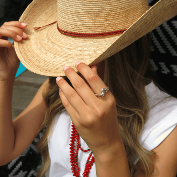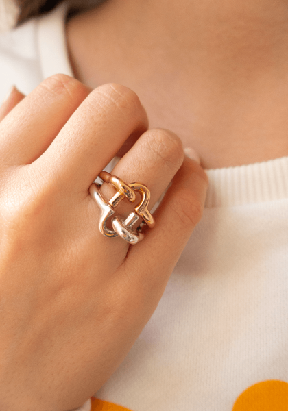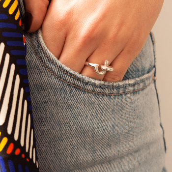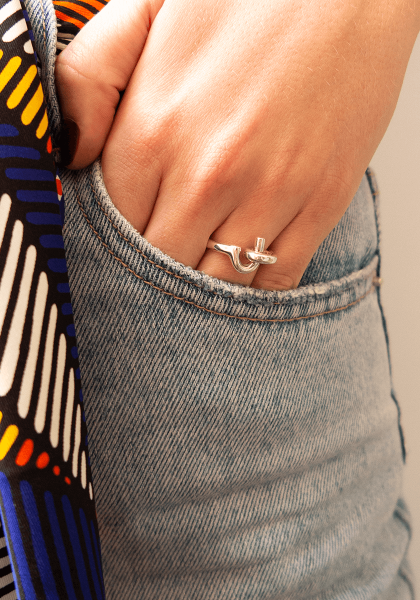 Réalisée en fil d'argent de forme ronde, notre Bague Hook épurée et moderne se distingue par son crochet délicat qui rejoint un anneau rond sur le dessus du doigt. Ce détail symbolique, représentant l’attachement, en fait le cadeau parfait pour exprimer votre amour à l’être cher.