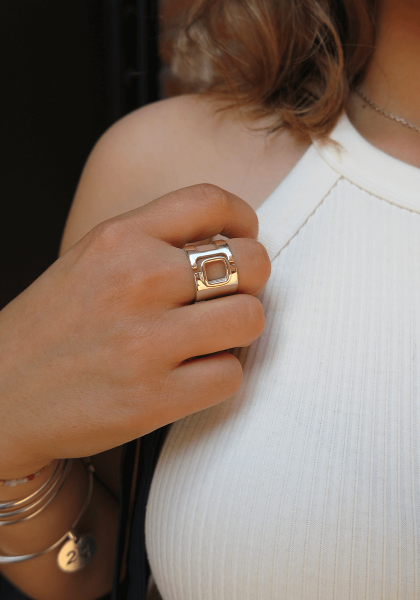 Sublimez votre style avec notre Bague Victor qui allie modernité et audace. Son design épuré, marqué par un motif carré délicatement posé sur un anneau ouvert, fait d’elle le symbole parfait de l’élégance minimaliste.