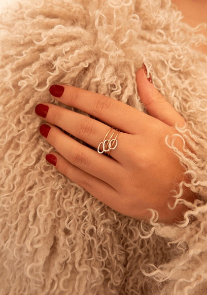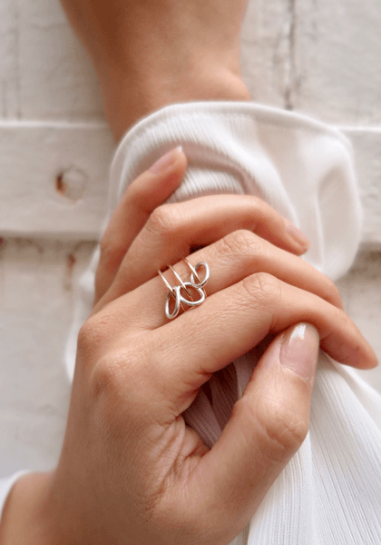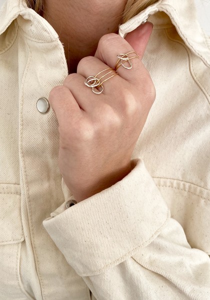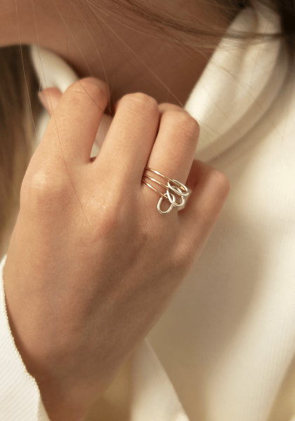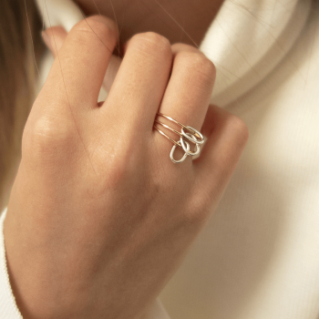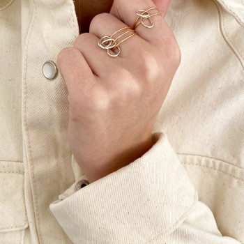Notre Bague Looping incarne délicatesse et raffinement, s'accumulant avec élégance sur votre doigt. Inspirée des emblématiques collections Bubbies et Menotte de Marc Deloche, cette création unique associe un anneau en or jaune 18 carats à une menotte en argent massif, symbolisant l'harmonie entre force et légèreté.
