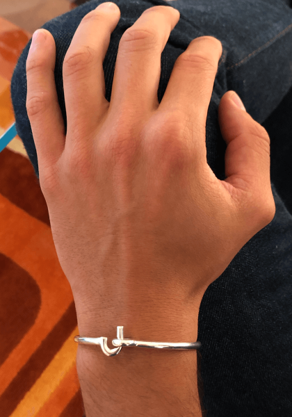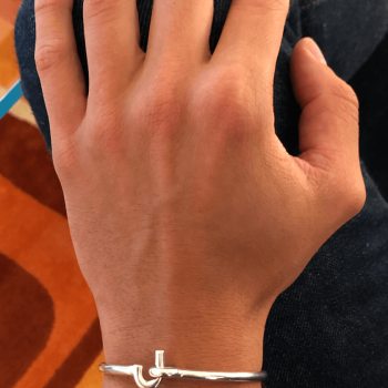 Notre Bracelet Hook est un bijou fermé qui se distingue par son design contemporain et sa finition soignée. L'ouverture sur le dessus, en forme de crochet, ajoute une touche originale et symbolique, évoquant l'attachement et la connexion.