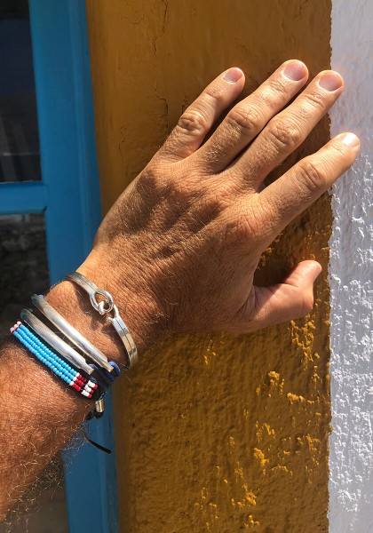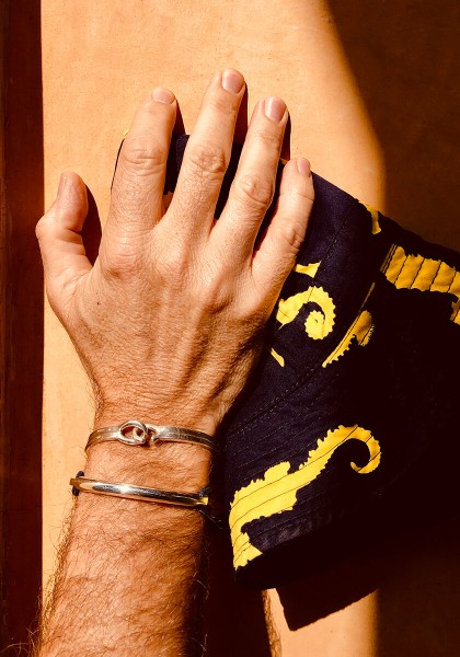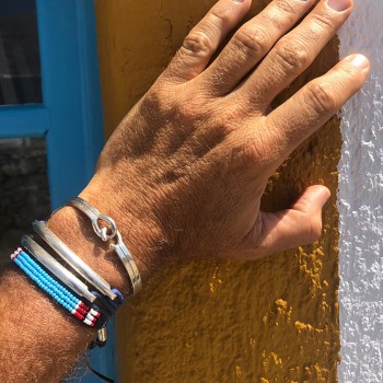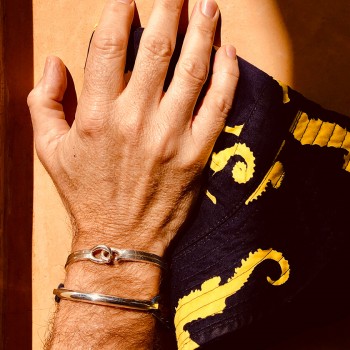 Notre Bracelet Parker en argent est un bijou original et élégant, composé de deux parties articulées qui s'emboitent entre elles. Il est orné d'un crochet qui sert de fermoir.