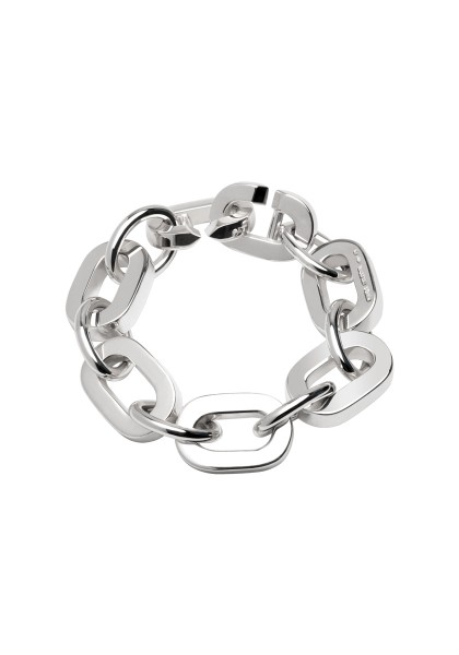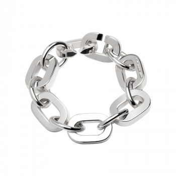 Cette gourmette pour femme en argent massif séduit par ses importants maillons entrelacés qui offrent un résultat graphique et esthétique au poignet.