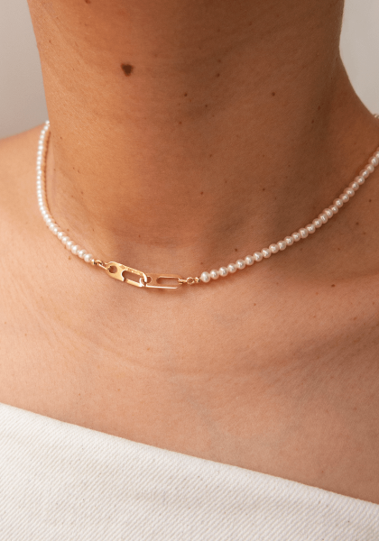 Ce collier de perles pour femmes vient casser les codes et apporte une touche de fraicheur à la Collection Circé.