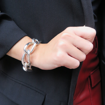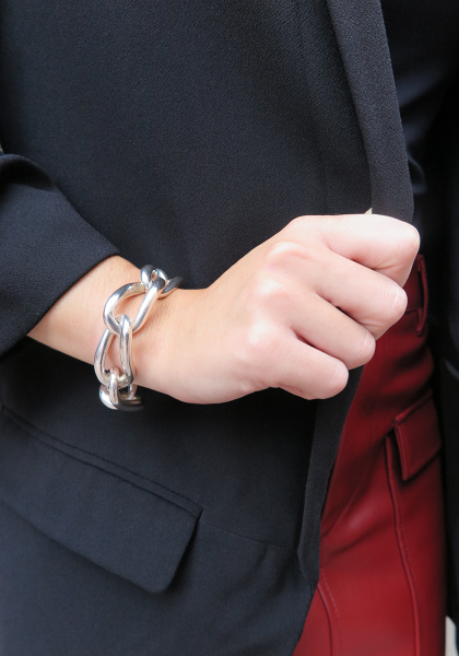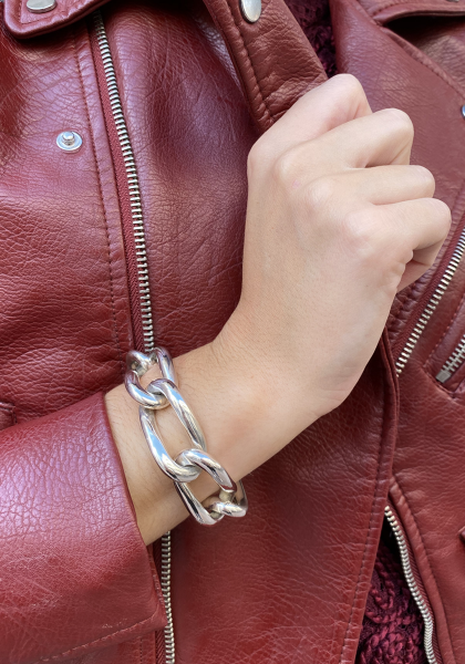 Sculptural and luminous, our Large 70 Chain Bracelet with 8 links captivates with its large polished silver links. A bold and timeless piece of jewelry, to be worn alone for a bold look or layered for added character.