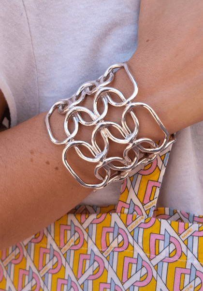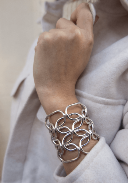 A centrepiece inspired by jewellery collection No. 7, this silver bracelet highlights the expertise of the jewellery designer. Each intersection of oval links reflects meticulous workmanship, where elegance meets craftsmanship, making this cuff bracelet a true work of art.