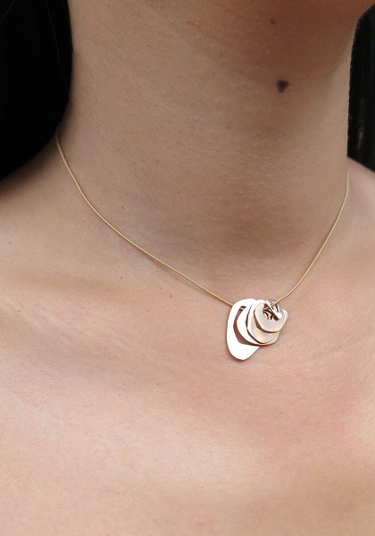 Our Small Gold Firestone Choker Necklace captivates with its asymmetrical design and contemporary look. Composed of five unique rings  in 18-carat gold, it is delicately mounted on a very fine nylon cord, available in the colour of your choice.