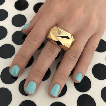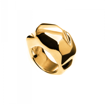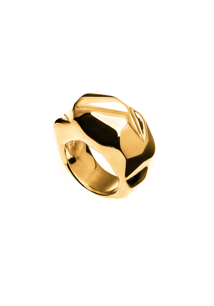 Like a rough sculpture, the faceted ring catches the eye with these different shapes. These faceted motifs are reminiscent of crumpled paper or rough stone.